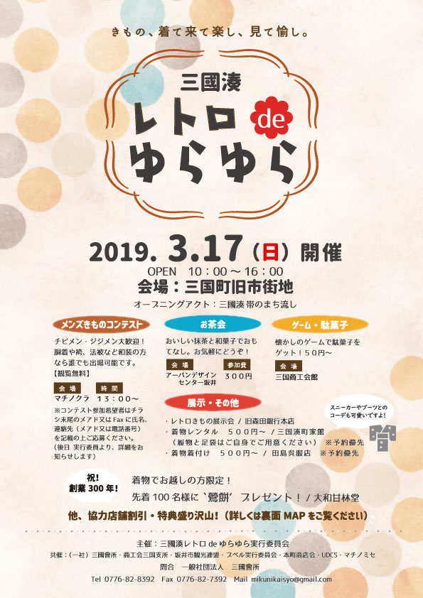 3月17日(日)10:00~三国町旧市街地で着物イベントを開催します!