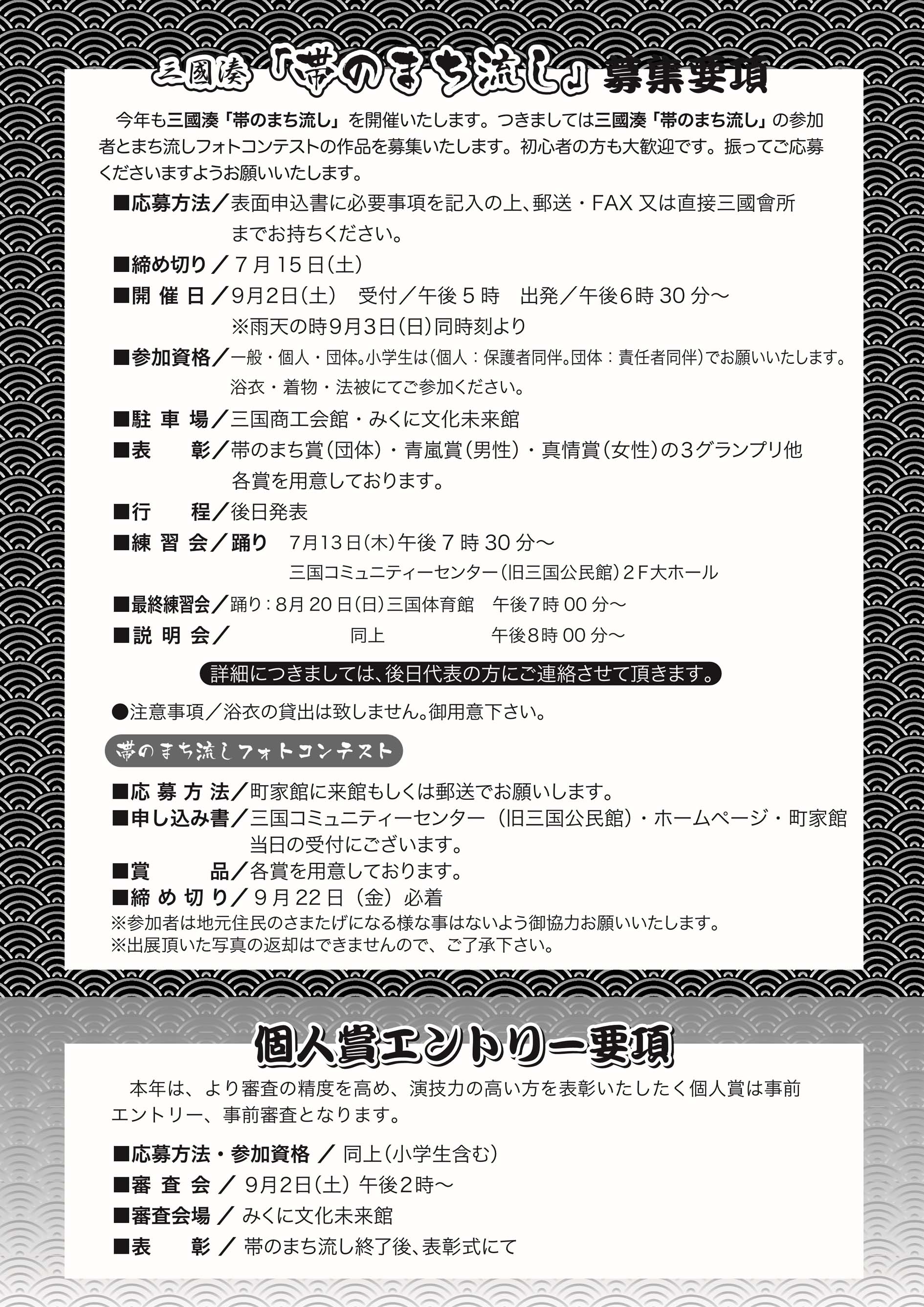 今年も三國湊「帯のまち流し」を開催いたします。