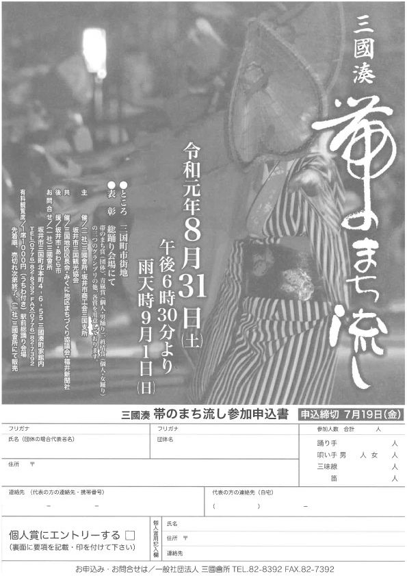 Posted by mikunikaisyo on 6月 24th, 2019 with 【終了】第10回 三國湊帯のまち流し 参加者募集中 はコメントを受け付けていません